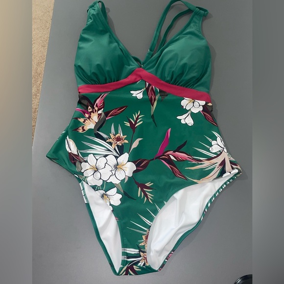 Cupshe Swim Cupshe Green Floral Tropical Onepiece Swimsuit Size 3x