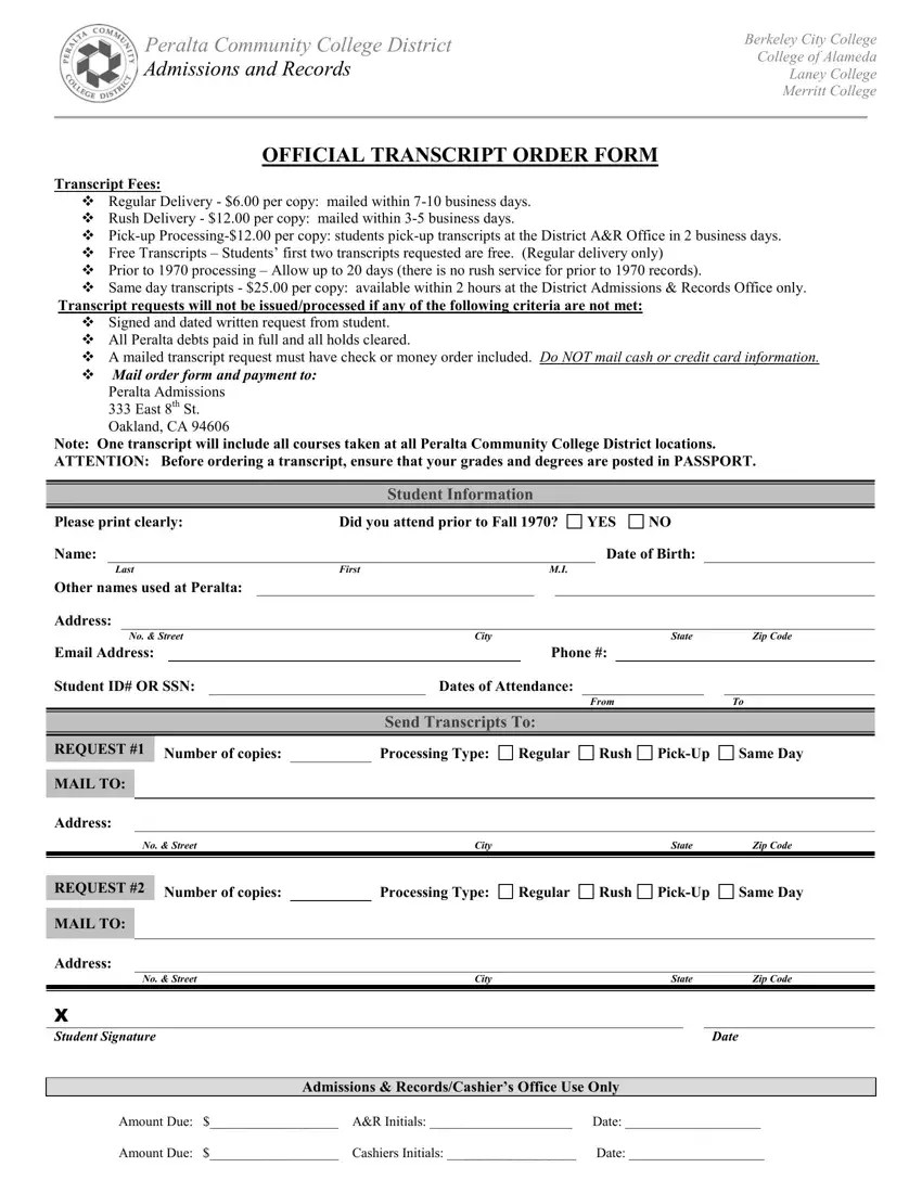 Laney College Transcripts ≡ Fill Out Printable PDF Forms Online