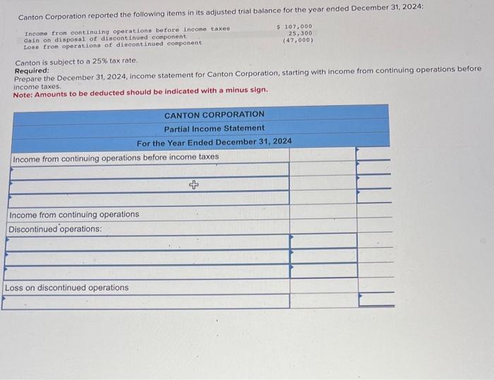 Solved Canton is subject to a 25 tax rate. Required