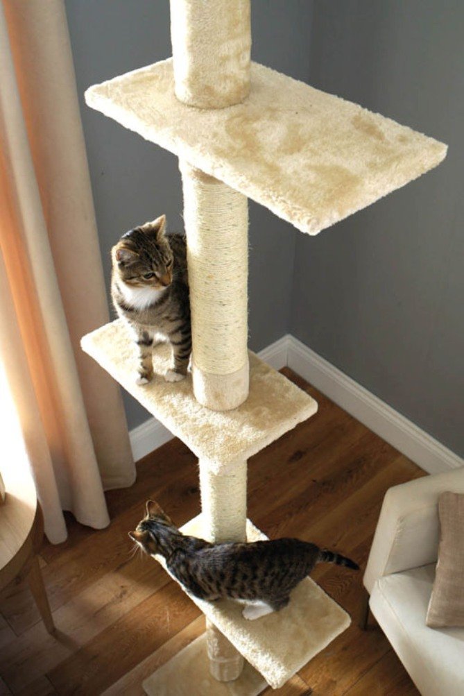 Man Builds Elaborate Tall Cat Tree Spanning Length of His Living Room Narrow Tall Cat Tree For exceptionally small spaces, this narrow yet tall cat tree will fit almost anywhere at only a little over 17 inches wide and 9 inches. Both perches have cushions that can be detached for. Additionally, this tall cat tree has 2 modern wooden perches for rest and observing. Narrow Tall Cat Tree.