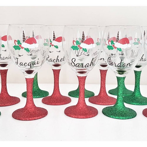 Christmas Wine Glasses Personalized Choose from 3 wine glass types & add any 3 lines of text. bring on the holiday cheer with personalized christmas wine glasses, cocktail glasses, beer glasses and more bar glassware. From christmas to hanukkah, valentine's day to mother's day, we have. check out our christmas wine glasses personalized selection for the very best in unique or custom,. Christmas Wine Glasses Personalized.