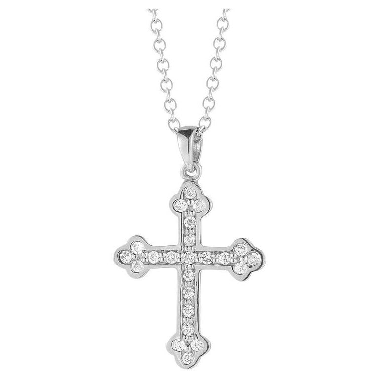 HandCrafted 14K White Gold Diamond Cross Pendant For Sale at 1stDibs