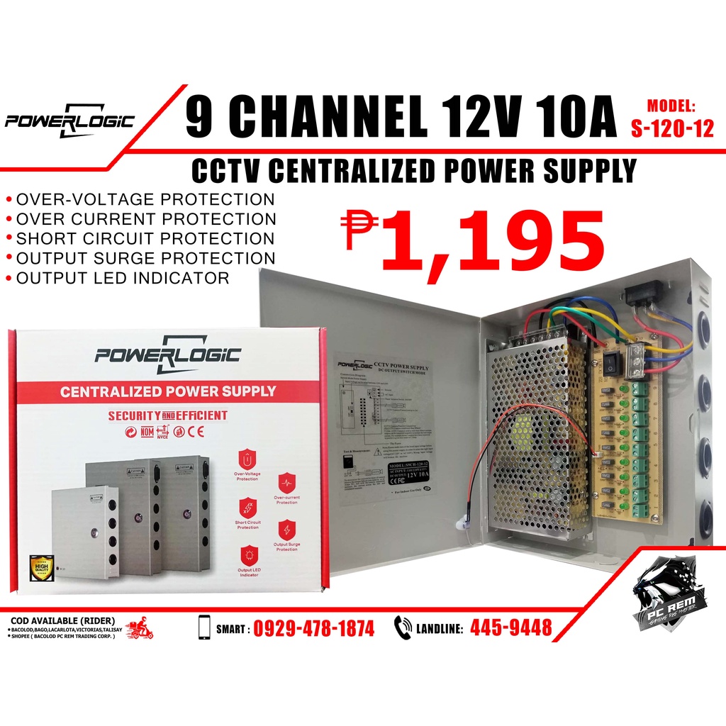 POWERLOGIC CCTV CENTRALIZED PSU 9 CHANNEL 12V/10A (S12012) Shopee