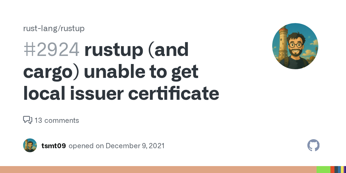 rustup (and cargo) unable to get local issuer certificate · Issue 2924
