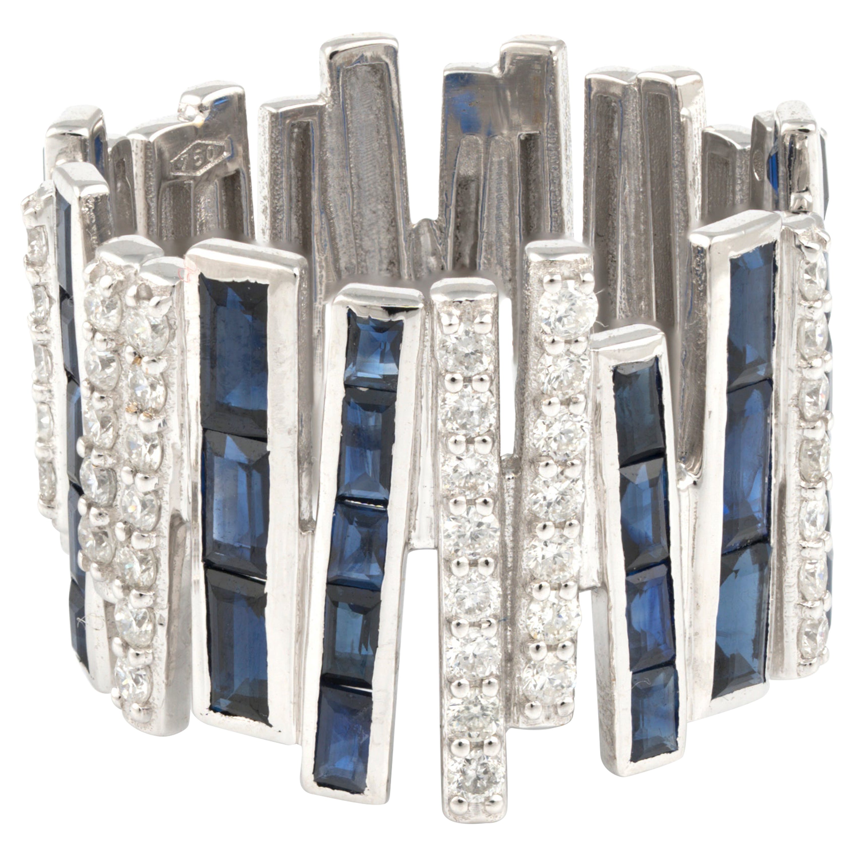 0.63 Carat Parti Sapphire and Diamond Wedding Ring For Sale at 1stDibs