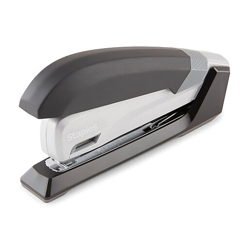 Staples Plus Desktop Flat Stack Full Strip Stapler 30 Sheet Staples One Touch Keep papers tightly fastened by stapling them with this black and gray stapler. Stapling and punching your paperwork shouldn't be hard on your hand. Complete your workspace with this desktop stapler. Staples One Touch.