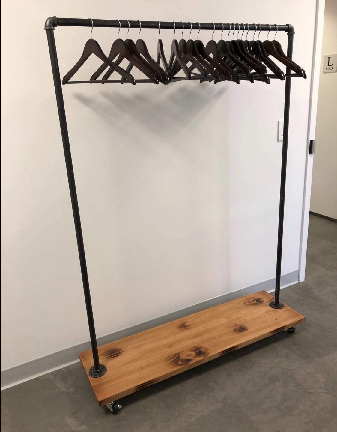 Garment Rack Industrial Loft shoe and coat storage. buy oropy industrial pipe clothing rack free standing, heavy duty detachable clothes rack with 4 stable feet for garment storage display, black: industrial garment clothing rack with rustic wood base, clothing closet and shoe storage. Constructed of black painted metal iron with electrostatic. Garment Rack Industrial.