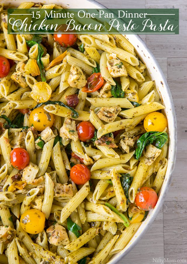 Weeknight Dinner OnePan Chicken & Bacon Pesto Pasta Nifty Mom