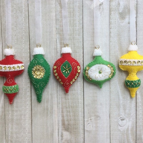 Vintage Style Christmas Ornament Kit DIY Makes 5 Bright Felt Etsy Wool Felt Christmas Ornament Kits Check out our wool felt christmas ornament kit selection for the very best in unique or custom, handmade pieces from our kits shops. This wool felt christmas ornaments kit features a delightful collection of warm mittens and stockings with a woodland creature theme to celebrate the christmas season. If you're new to needle felting or just looking for something fun. Wool Felt Christmas Ornament Kits.