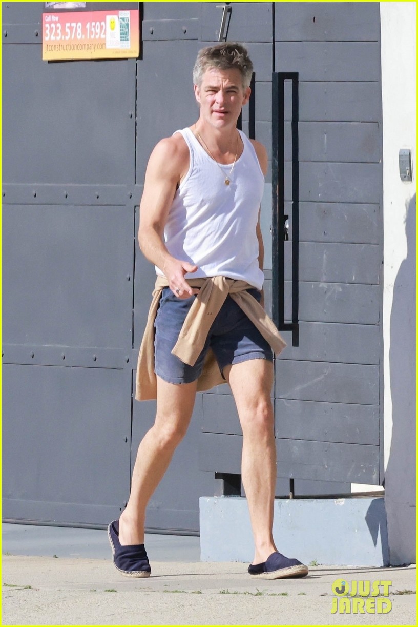 Photo chris pine tank shirt short shorts morning workout 21 Photo