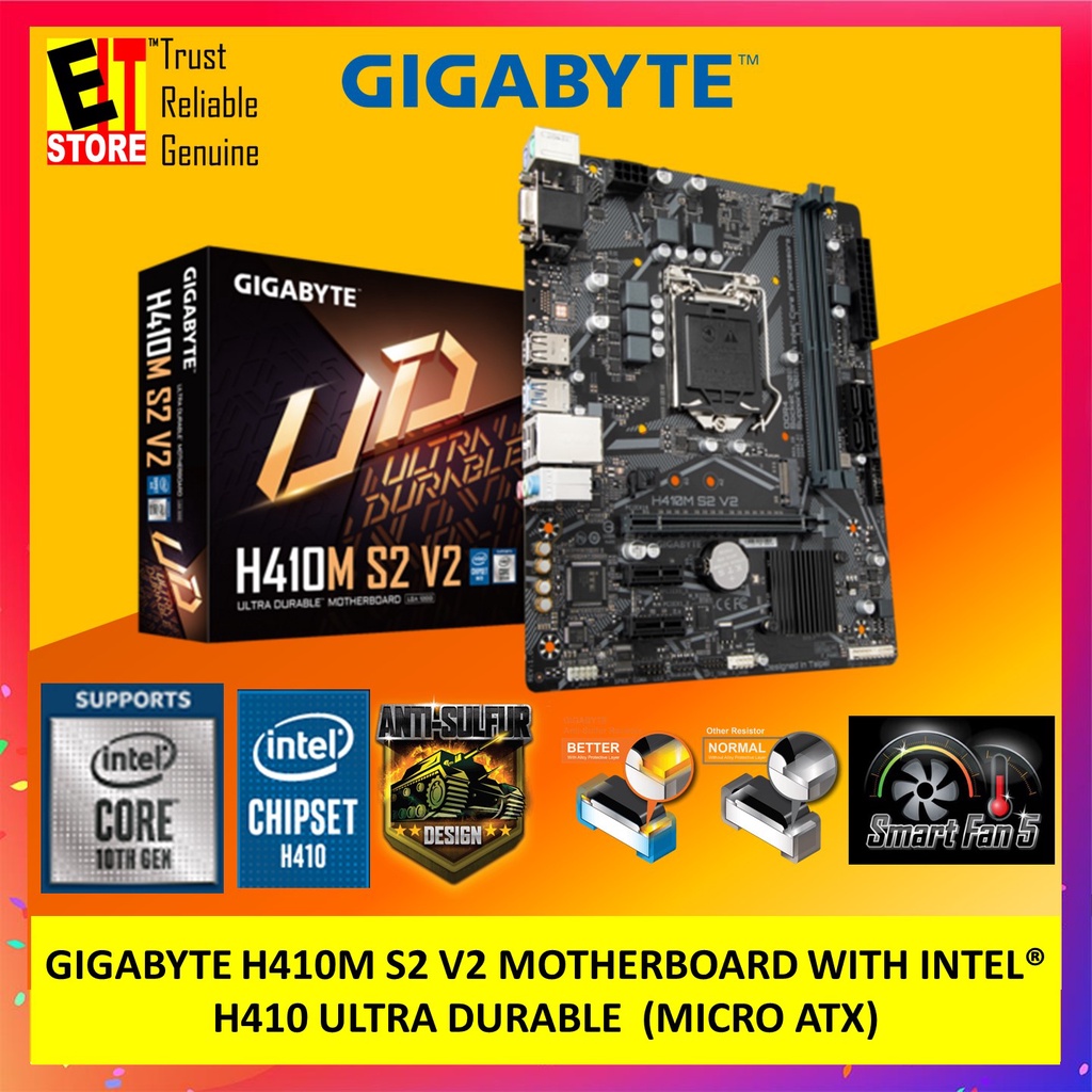 Gigabyte H410 S2 motherboard Shopee Malaysia Gigabyte H410 Motherboard Specifications lasting quality from gigabyte.gigabyte ultra durable™ motherboards bring together a unique blend of features and technologies. Support for 10th generation intel® core™ i9 processors/intel® core™ i7. Support 10th generation intel® core™ i9. Gigabyte H410 Motherboard Specifications.