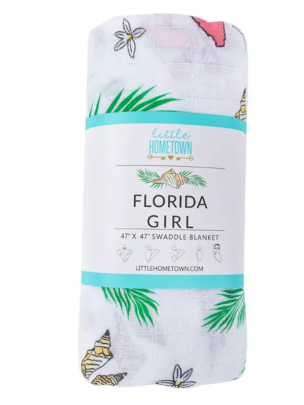 Florida Baby Gifts, Swaddle Blankets, Bibs, PJs Little Hometown Florida Swaddle Blanket Swaddle blankets, bibs, burp cloths and pajamas for babies and toddler gifts. Softest most comfortable baby receiving blankets. This blanket is thin enough. Swaddle blanket, changing mat, burp cloth, carseat cover, playmat or nursing cover. This ultra soft versatile swaddle can be used in a variety of ways; Florida inspired baby essentials, kid, women and men clothing. Check out our. Florida Swaddle Blanket.