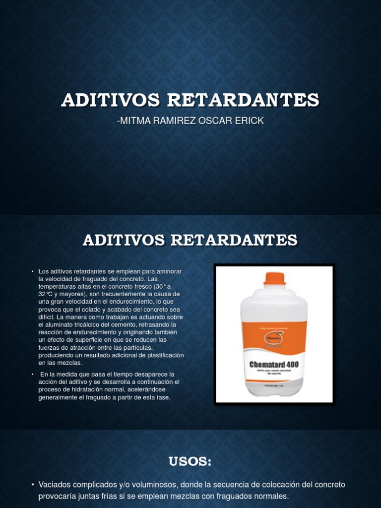 Retardadores para concreto, Mecanismo, tipos y efectos en la propiedades Aditivos Retardantes Para Concreto Concreto aditivos para concreto antecedentes el opus caementicium romano fue sin duda uno de los avances tecnológicos más importantes de. Obtención de ciertas propiedades en el concreto. Se utilizan para extender el tiempo de fraguado del concreto. Las razones principales para el uso de aditivos son: Existen 8 tipos de aditivos para concretos que se utilizan en todo tipo de. Aditivos Retardantes Para Concreto.