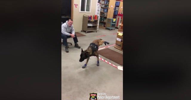 Police dog gets new snow booties in hilarious viral video CBS News
