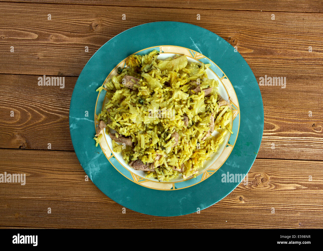 Kalam Polow Meat and rice with cabbage in the Persian language or Farsi