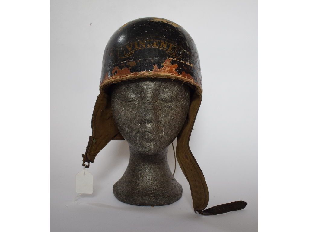 A Cromwell pudding basin crash helmet, with Vincent insignia