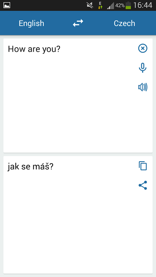 Free czech to english translator with audio. Copy text in any app and tap the google translate icon to translate (all languages) • offline: Translate words, phrases and sentences. Free online czech to english and english to czech translator from lingavanex. Accurate translations for words, phrases, and texts. Google's service, offered free of charge, instantly translates words, phrases, and web pages between english and over 100 other languages. Translate texts & full document files instantly. Accurate translations for individuals and teams. Millions translate with deepl every day. Translate with no internet connection (59 languages) • instant camera.