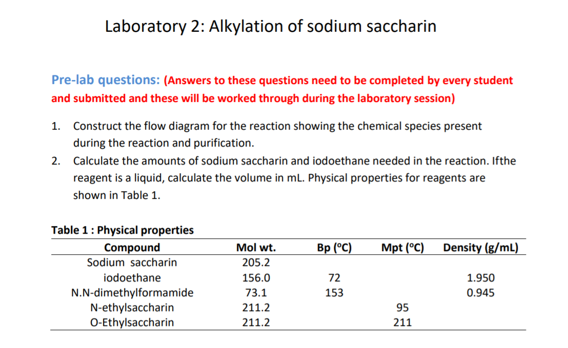 Solved Laboratory 2 Alkylation of sodium saccharin 1.