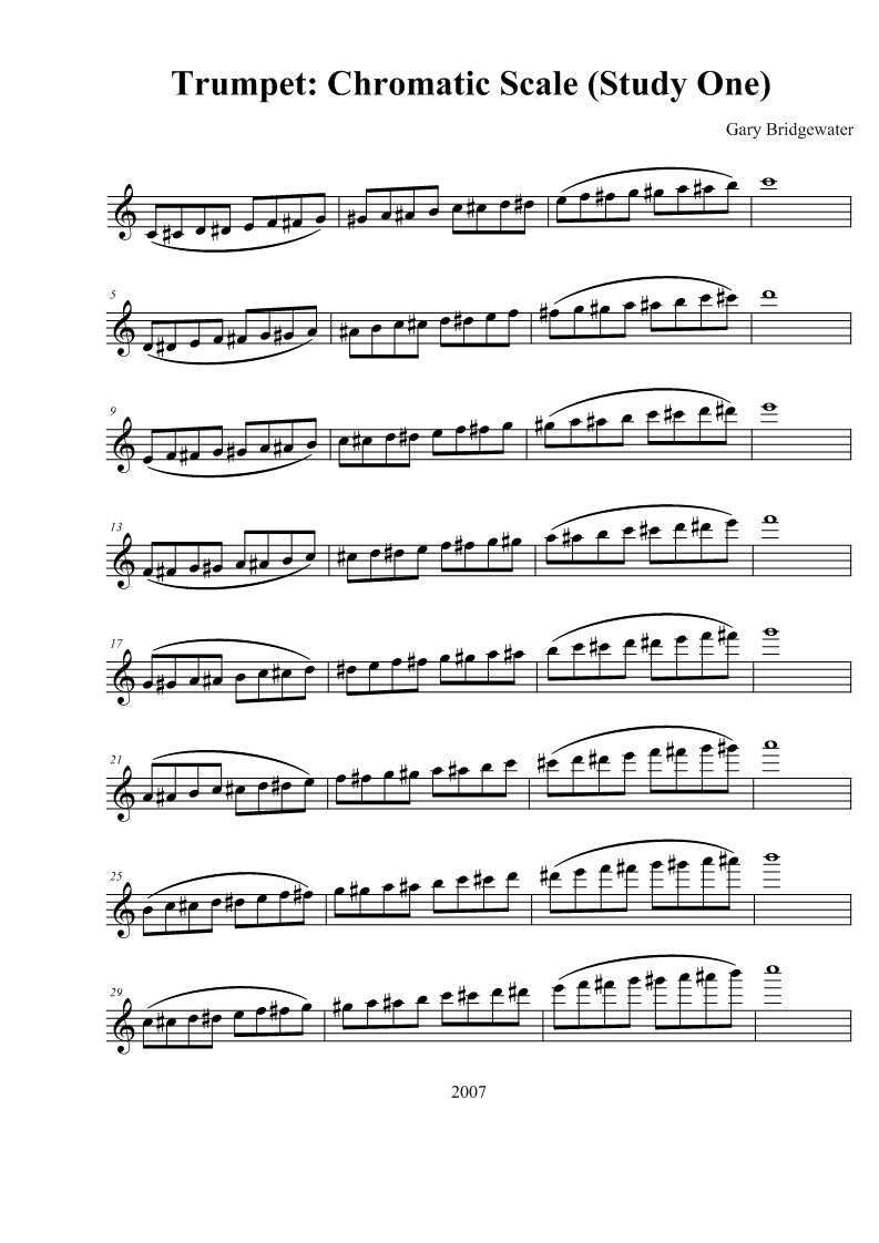 Trumpet Chromatic Scale exercise sheet music for Piano download free in Trumpet B Flat Chromatic Scale It is the highest note in the scale and should sound like a high version of the first note. Published almost 7 years ago. 9 plays / 316 views. Music notation created and shared online with flat #music #trumpet #scale chromatic scale b flat trumpet 🎺 c to c Published over 2 years ago. 12 followers • 9 scores. 0. Trumpet B Flat Chromatic Scale.
