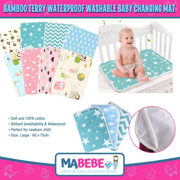 Bamboo Terry Waterproof Washable Baby Changing Mat (Random) Shopee