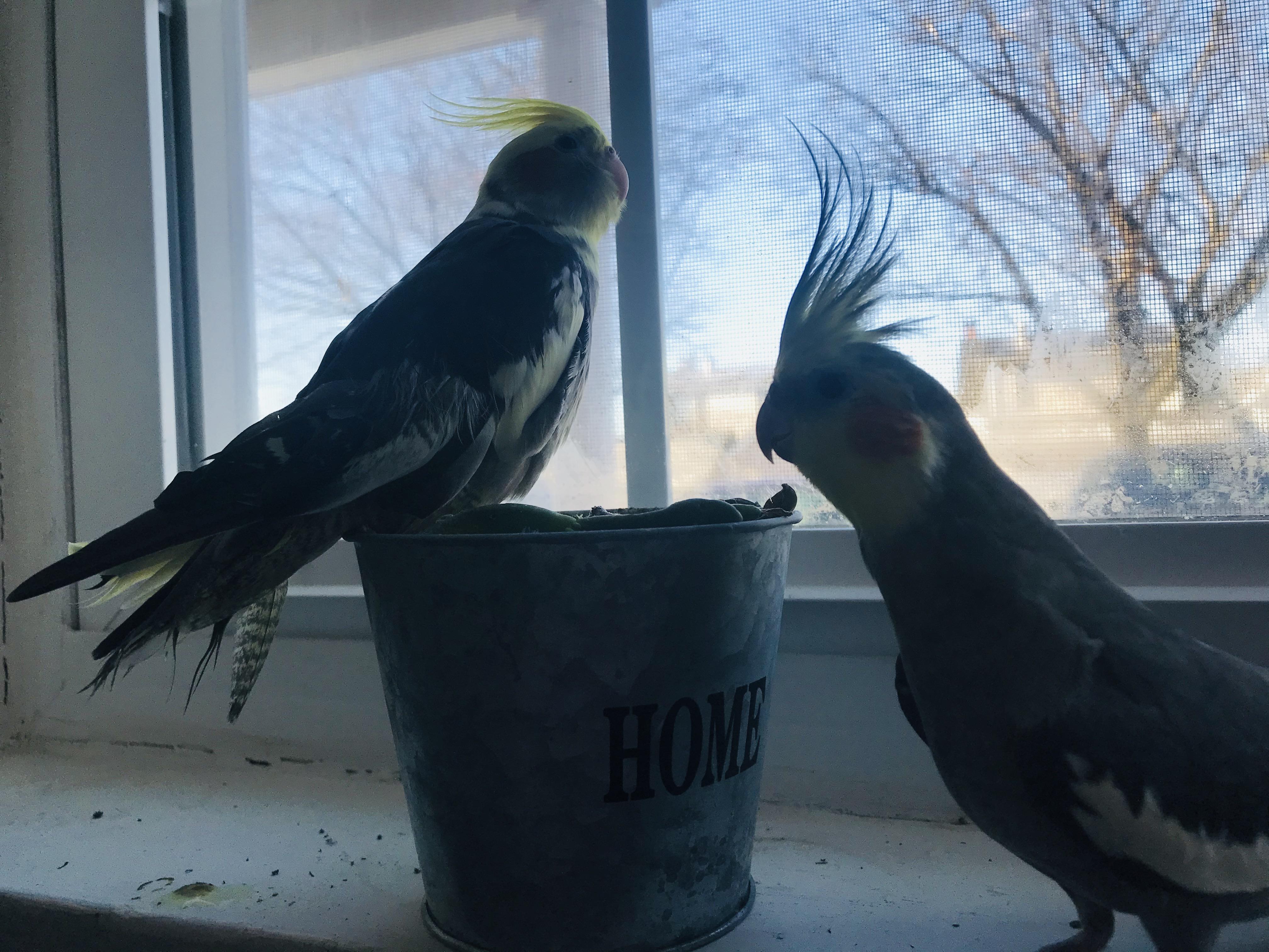 Mr. and Mrs. in the morning. r/parrots