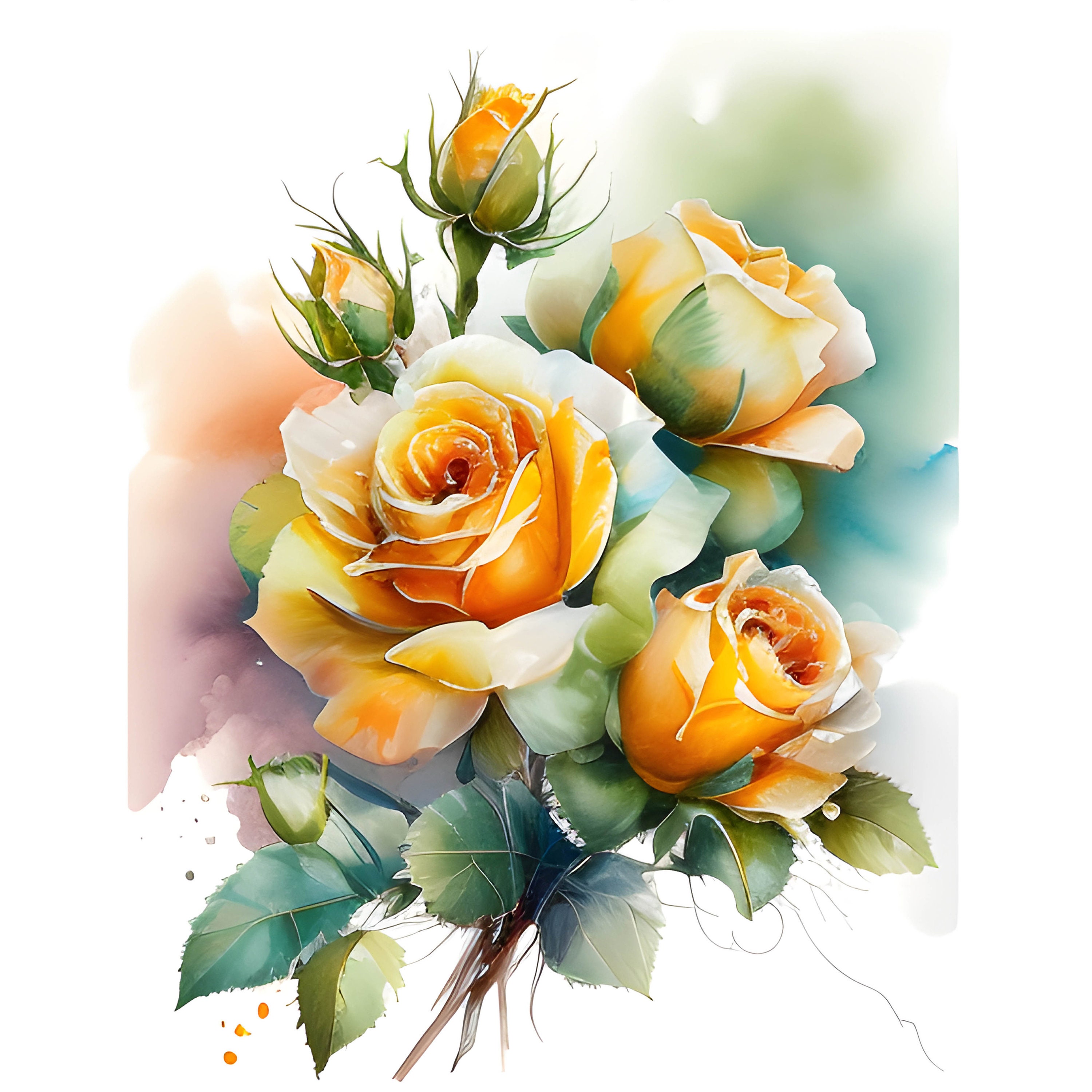 Watercolor Yellow Rose Clipart, PNG Instant Download File, Digital