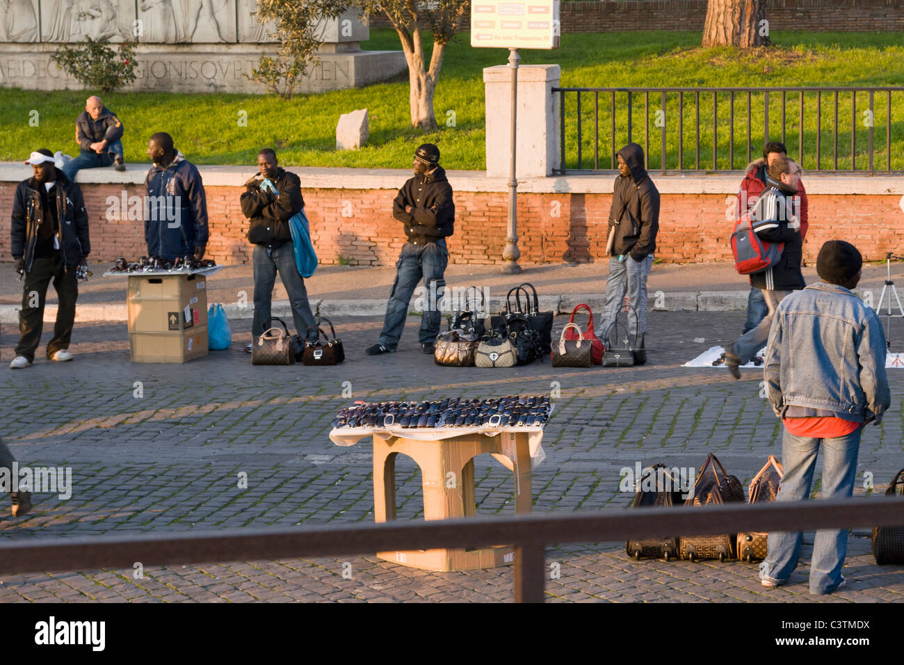 African immigrants set up illegal street stalls selling fake brand