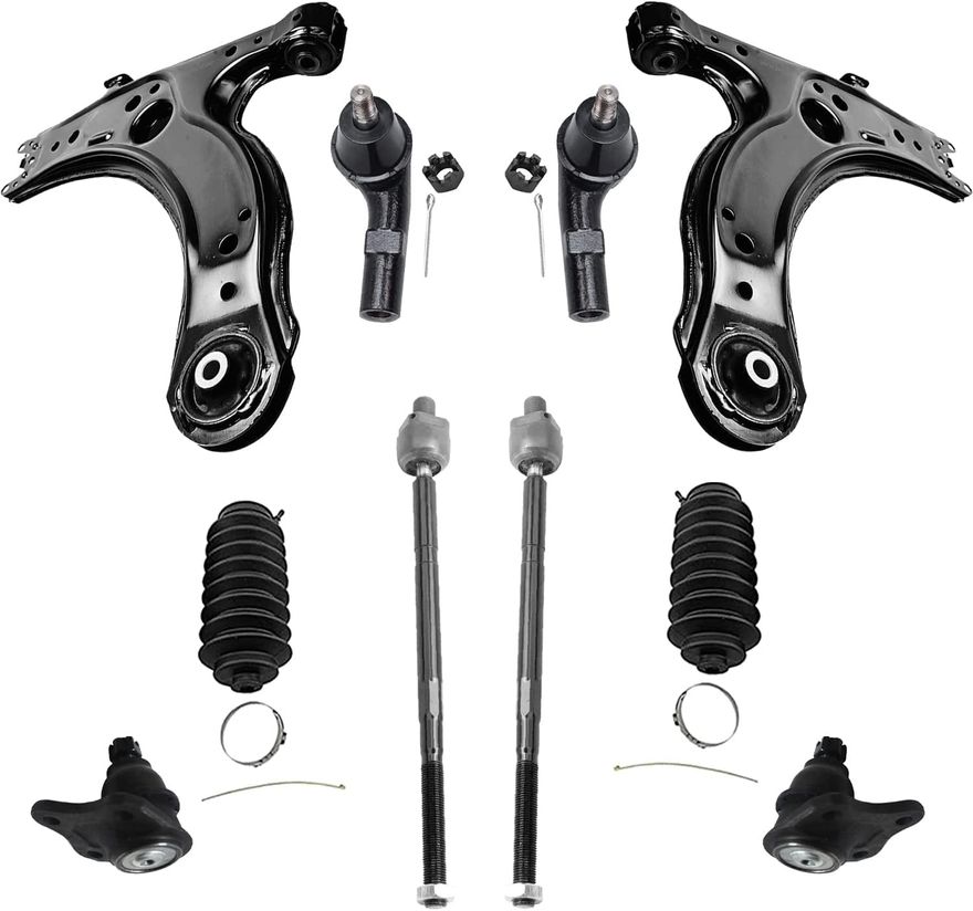 10pc Front Lower Control Arms Ball Joints Tie Rods Suspension Kit