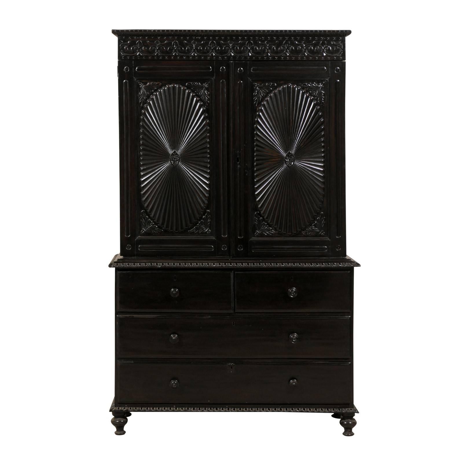Richly Carved Shiny Black British Colonial with Oval Pattern on