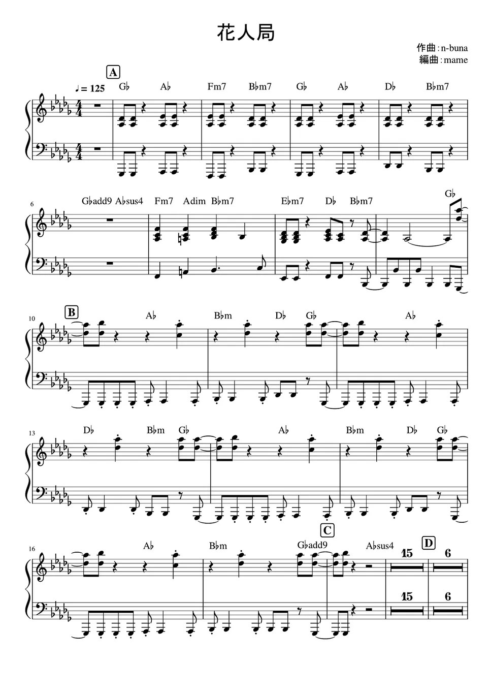 Yorushikaヨルシカ Flower And Badger Game花人局 Piano part Sheet