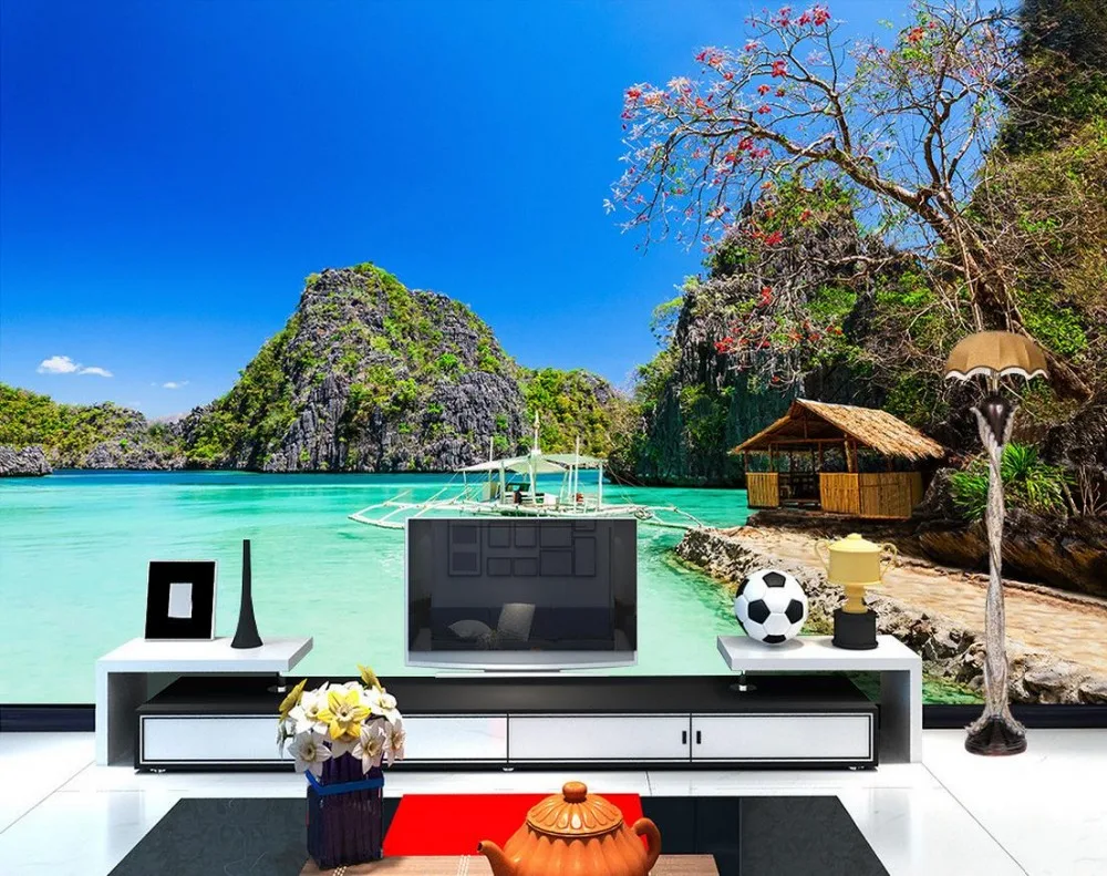 3d wallpaper nature Seaside Tropical beach hut ocean 3d wallpaper TV background wallpaper the Beach Hut Mural Wallpaper Swimming, seaside strolls, and days spent in the sand will be remembered just by looking at this artful wallpaper. The unique and quirky beach hut style will invite a cool theme into your bathroom, bedroom or wherever you wish to display it. Check out our beach hut wall mural selection for the very best in unique or custom, handmade pieces. Beach Hut Mural Wallpaper.