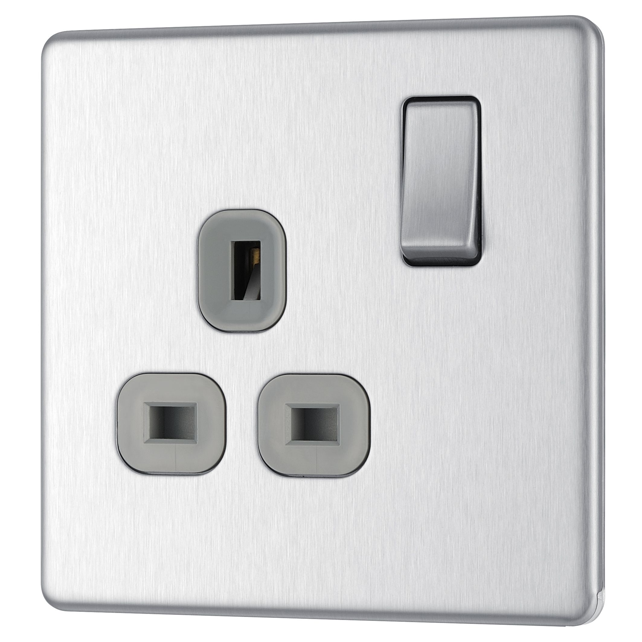 Colours 13A Brushed steel Switched Single Socket Departments DIY at B&Q