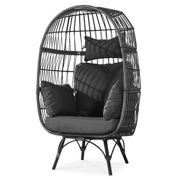 NICESOUL Patio Gray Wicker Stationary Oversized Lounge Egg Chair with