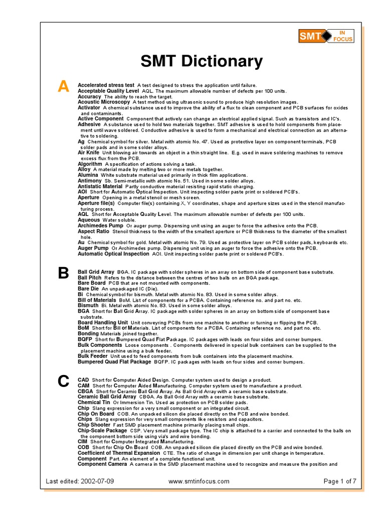 SMT Dictionary PDF Printed Circuit Board Soldering