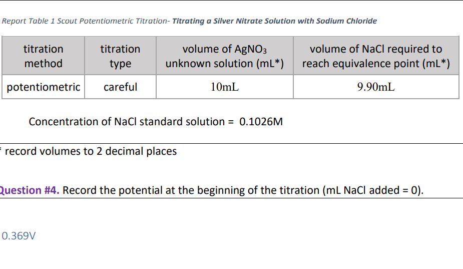 Solved Report Table 2 Scout Potentiometric Titration