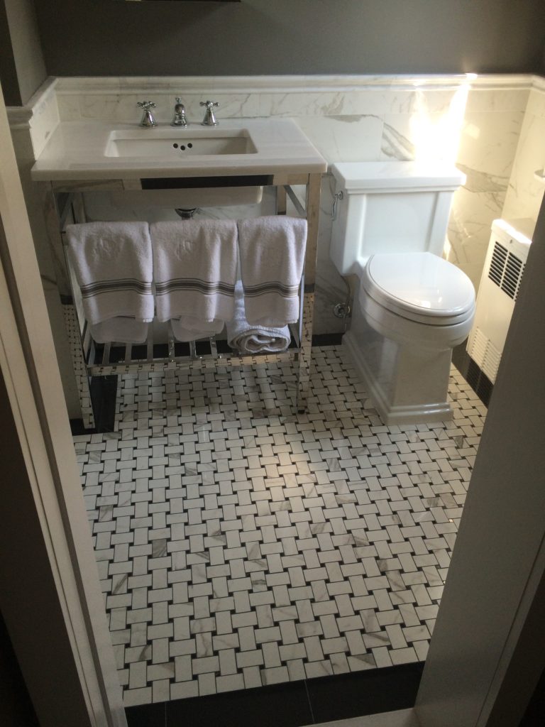 C10SM1 Bathroom with statuario basket weave flooring RAI Designs
