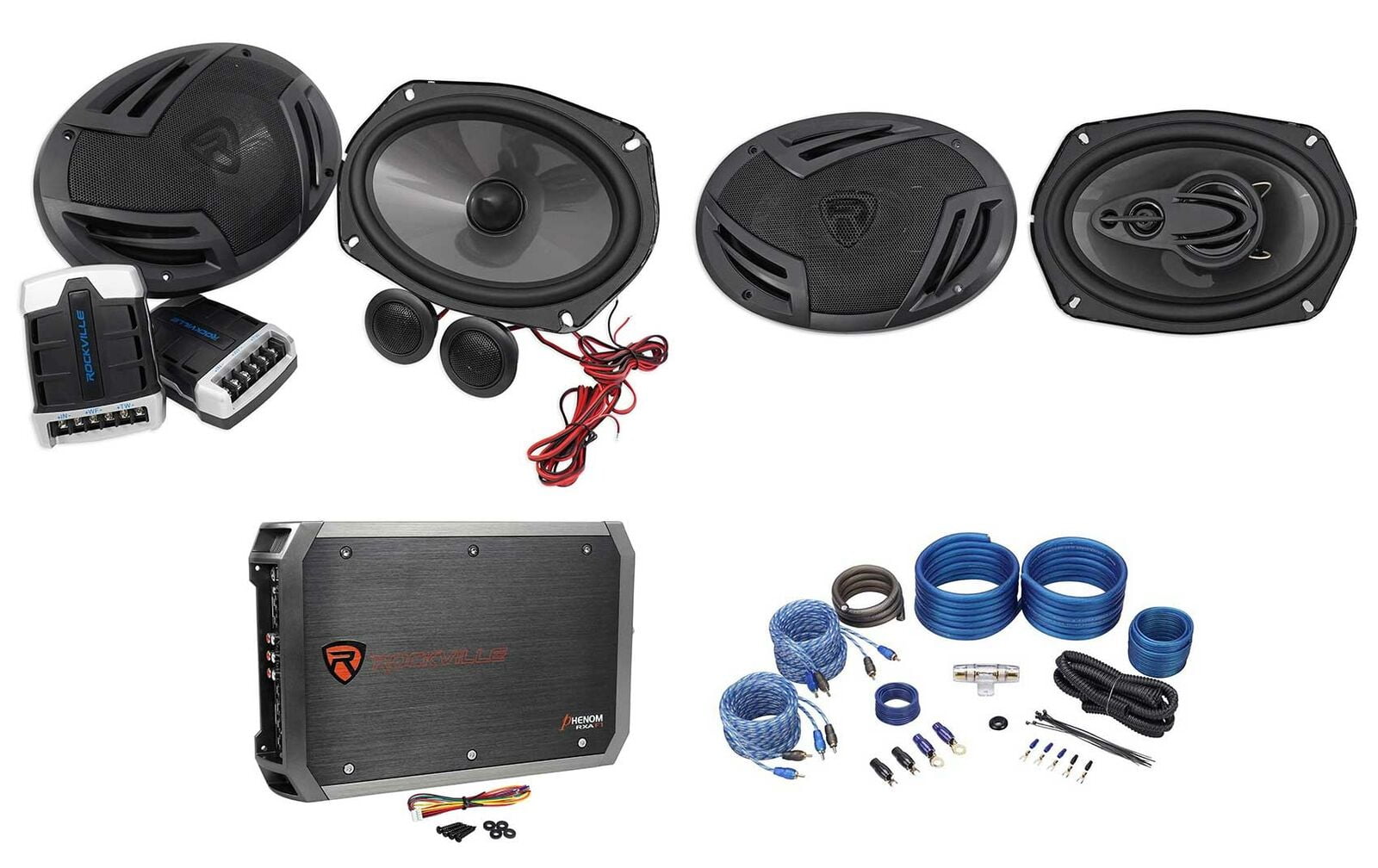 Pair Rockville RV69.2C 6x9" Component Speakers+6x9" 4Way Speakers+4Ch Amp+Kit