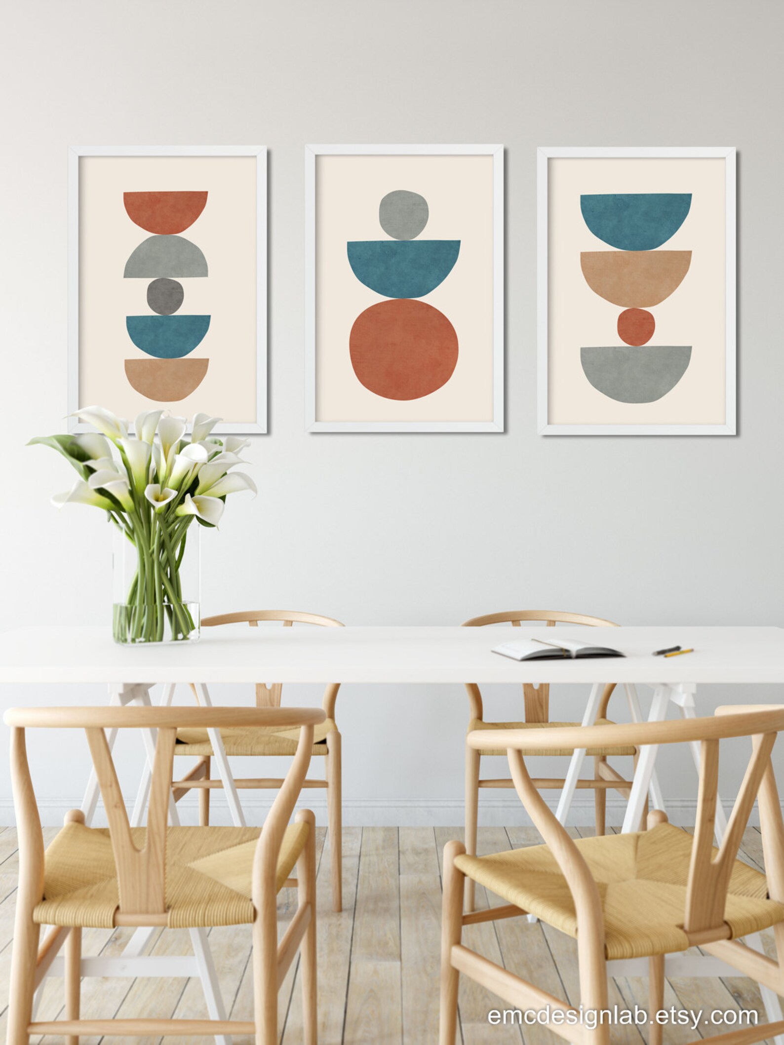 Set of 3 Wall Art Prints in Burnt Orange Blue Gray Beige Semi Etsy