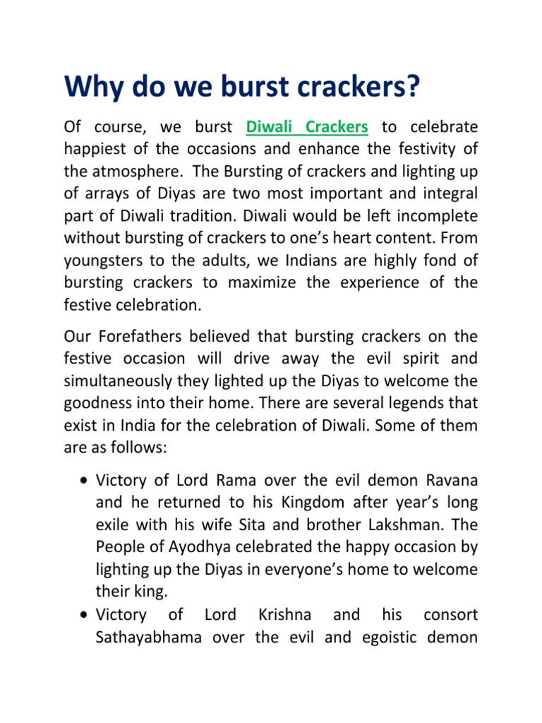 Why Do We Burst Crackers ? PDF Fireworks Hindu Mythology