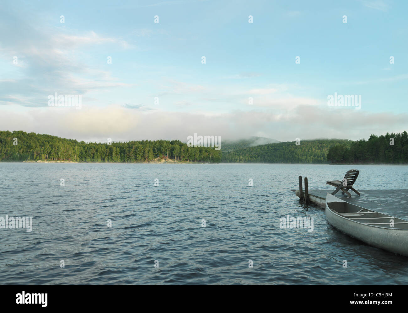 dock at sunrise on Adirondack Lake Stock Photo Alamy