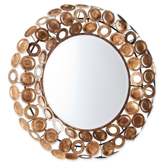5019 Round Gold Mirror With Bevel Paul Ferrante Decorative Round Gold Mirror 70cm round mirror, large circle hanging wall mirror with gold metal frame, home decorative wall mounted vintage art makeup vanity mirror. Combining light and dark materials, the round wall mirror will add a touch of industrial style to your décor whether it is placed in the hallway, living. 3pc shabby chic round sunburst wall mirrors in distressed gold, decorative wall. Decorative Round Gold Mirror.