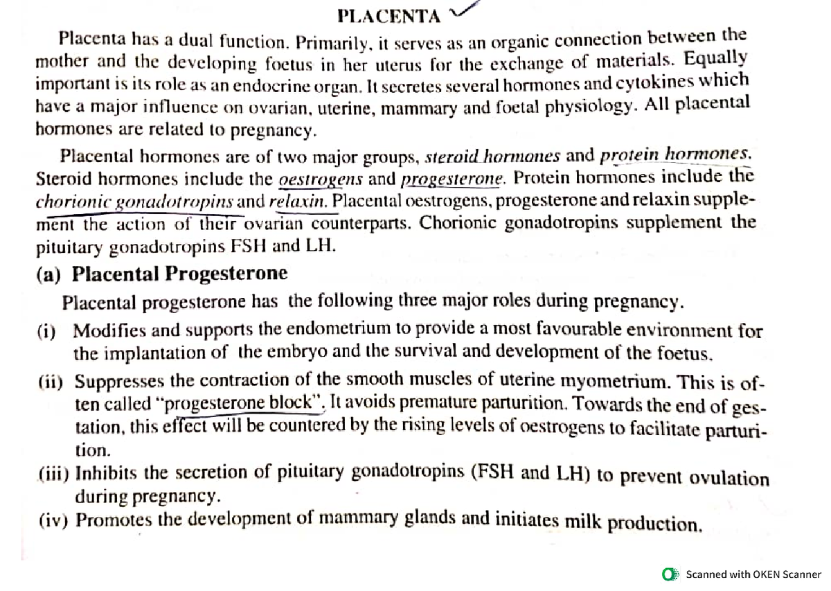 Placenta and it's hormones Bsc zoology Studocu