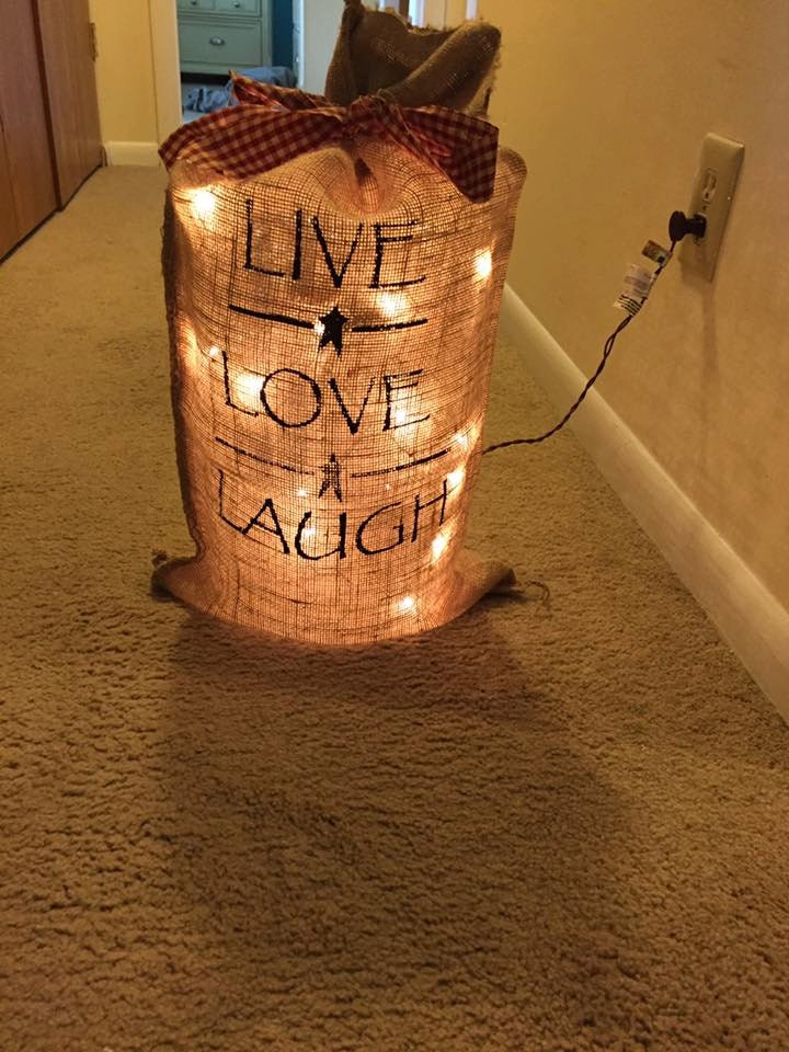 Live Love Laugh electric lighted burlap bag. Burlap decor, Burlap crafts, Burlap projects How To Make Lighted Burlap Bags For today’s tutorial, i’m showing how to make small, decorative bags. Once you make the basic bag, you can embellish it however you like. little burlap bags can be used for so many things like party favors filled with trinkets or candy, or used as a gift bag to hold a gift card, jewelry, or money. you can. How To Make Lighted Burlap Bags.