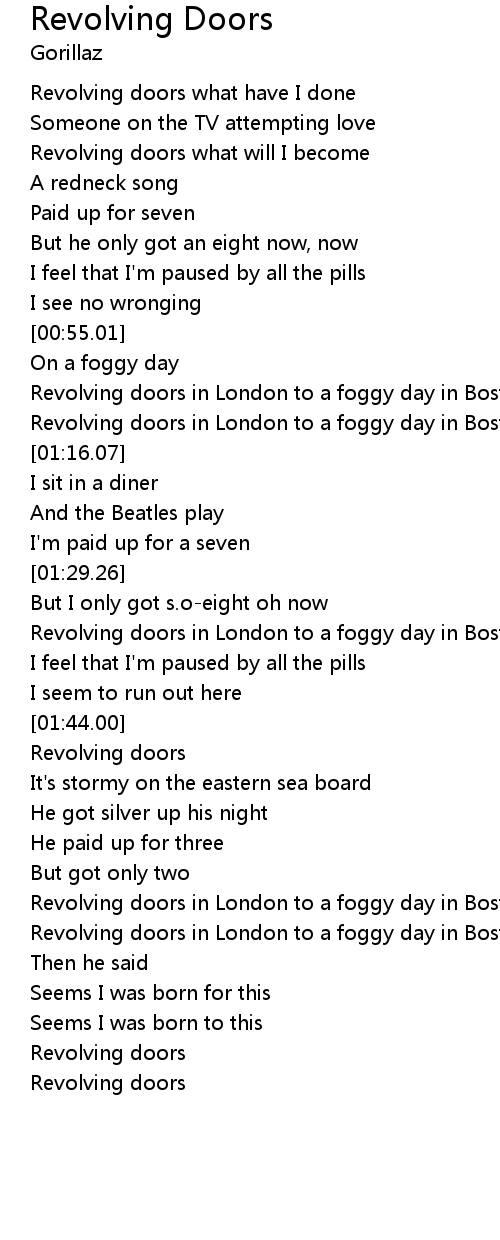 Gorillaz Revolving Doors Fanmade Music Video With Lyrics On Screen Revolving Door Joseph Lyrics download lrc format lyrics which is the music subtitles of : original lyrics of revolving door song by joseph. Revive some openness from my. If i would have known what i know now. listen to revolving door by joseph. Explain your version of song meaning, find more of joseph lyrics. Would i do it again? See lyrics. Revolving Door Joseph Lyrics.