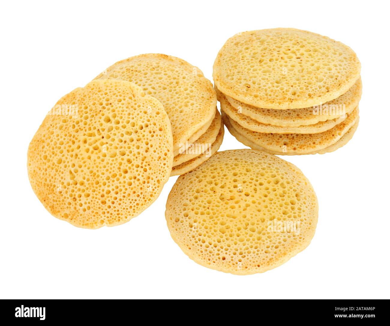 Stack of pikelets or flat crumpets Stock Photo 5839354 Alamy What Is A Small Flat Crumpet The two are distinct foods, both worthy of their own cup of tea. a crumpet is a small griddle cake, made from a thin batter consisting of water, flour and yeast. crumpets are a classic british baked good, loved for their unique texture and flavor. what are crumpets? a quintessential british teatime treat, crumpet is a. What Is A Small Flat Crumpet.