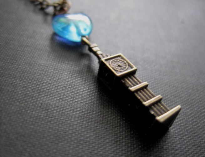 Big Ben Clock Tower Blue Heart Necklace, Elizabeth Tower Necklace