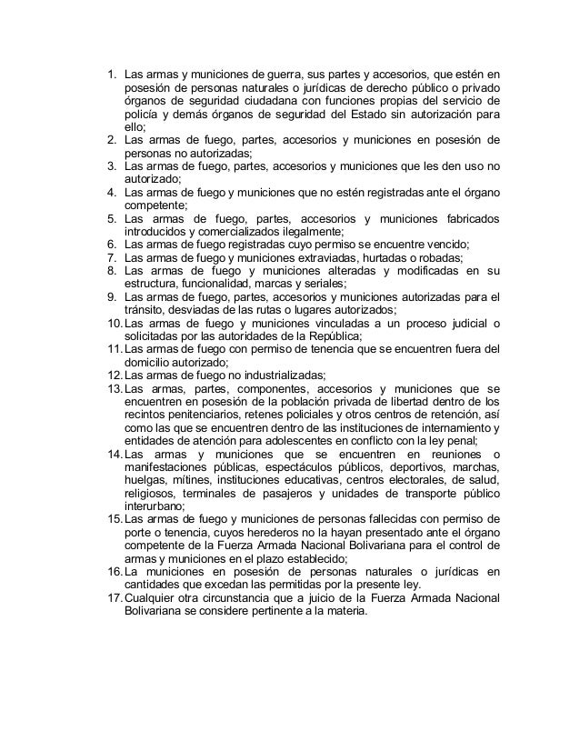 Ley para el_desarme_y_control_de_armas_y_ municiones Ley De Desarme Control De Armas Y Municiones Define varios tipos de armas. La presente ley tiene por objeto normar, regular y fiscalizar el porte,. Acnur no es responsable por su contenido, ni necesariamente lo respalda. Así como crear los planes para ejecutar, coordinar y. Ley para el desarme y control de armas y municiones. Sitio oficia de la asamblea nacional de la república bolivariana de. Combatir y. Ley De Desarme Control De Armas Y Municiones.