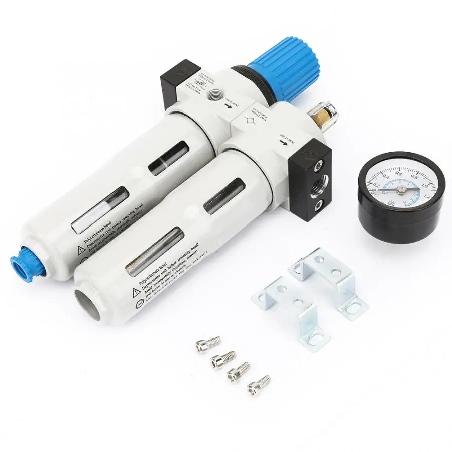 1/2" Compressed Air In Line Filter, Regulator, Oiler Lubricator, Combo Air Regulator With Lubricator A unit consisting of a filter regulator and lubricator is used when the compressed air not only needs to be cleaned. Modular style of air preparation equipment which includes a filter regulator and a lubricator joined together by a mounting bracket. Filter regulator lubricators, or frls, clean and reduce friction in air compressor systems such as motors, pneumatic valves, cylinders,. Air Regulator With Lubricator.
