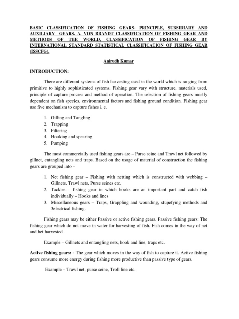 Fishing Gear Glossary for the Matrix (By Gear Type) DocsLib Classification Of Fishing Gears Pdf The document provides definitions and illustrations of the configuration and mode of operation of typical fishing gears. Andres von brandt classified fish catching methods of the world into 16 major groups on how fish are caught. The isscfg provides a global structure for the classification of fishing gear and provides for national or regional variations to be included at. Operations. Classification Of Fishing Gears Pdf.