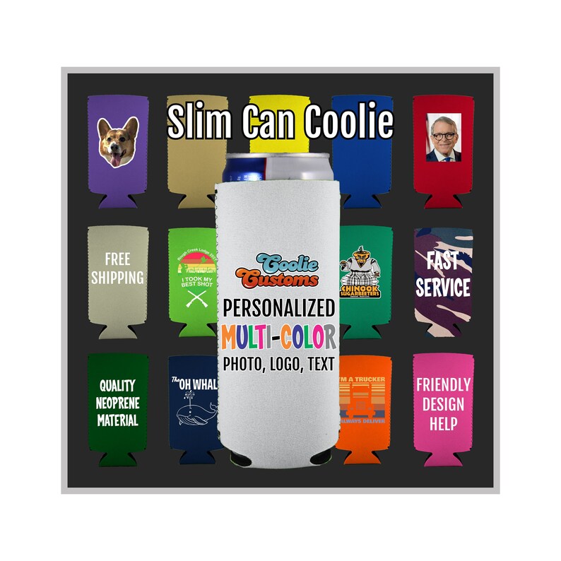 Low Minimum Custom Neoprene Slim Can Coolie. ANY Design Etsy